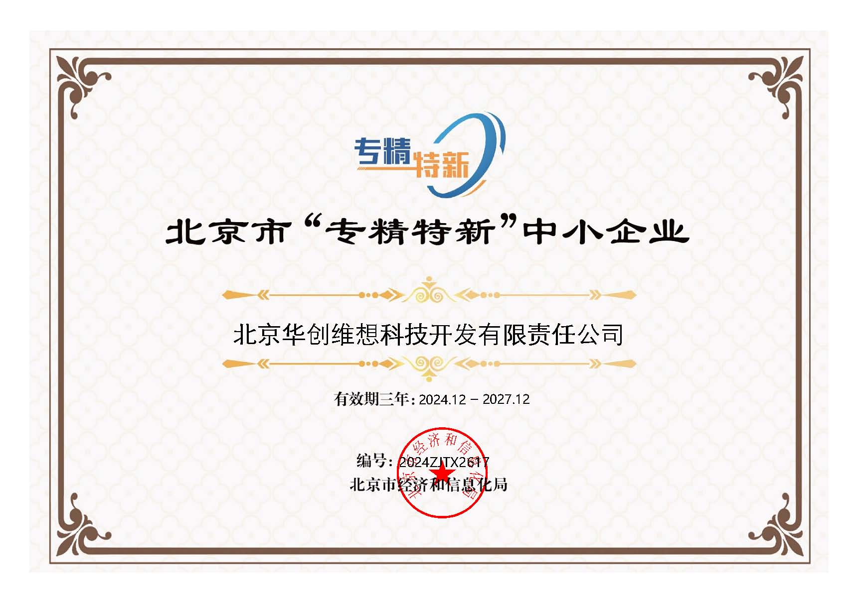 喜報(bào)—華創(chuàng)維想獲得北京市“專精特新”中...